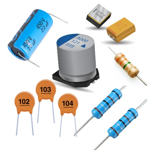 • Resistors, capacitors, coils